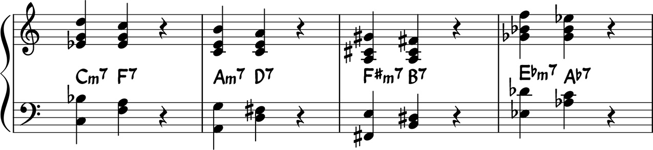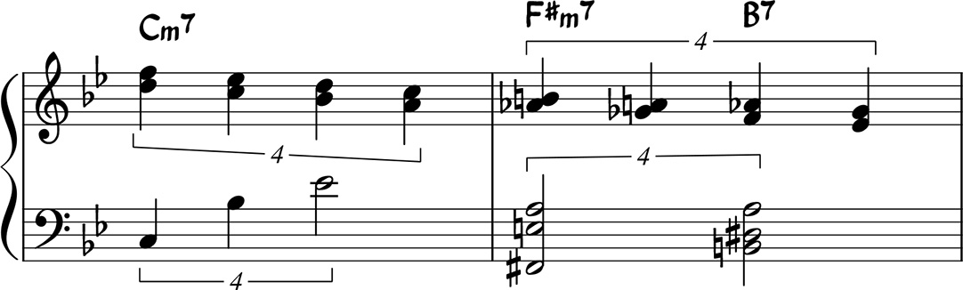 Now let’s give Cm7 its dominant chord back (F7), but put it in the same measure: