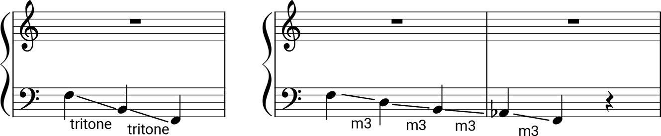 If we divide a tritone, we get a minor third. Now we’ve ended up with 4 minor thirds moving down.